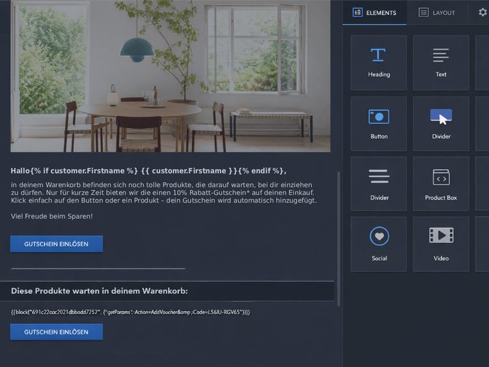 Nutze dynamische Inhalte, um z.B. Produktempfehlungen auszuspielen oder einzelne Bereiche deiner E-Mail zu personalisieren.
