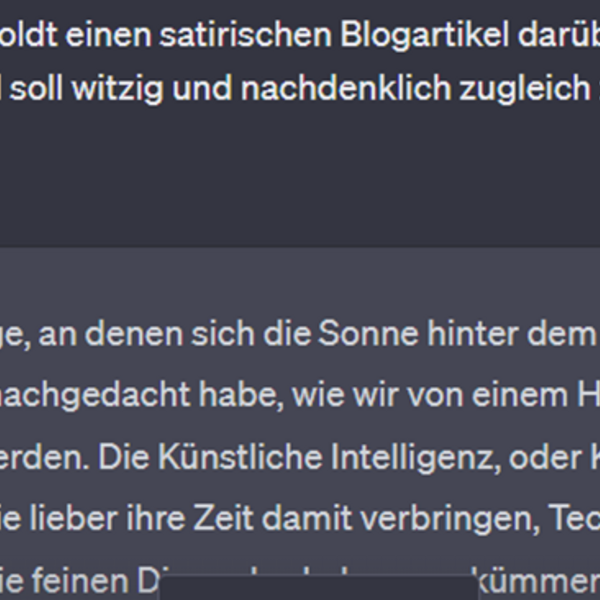 Sobald wir die 5 Themen haben, können wir diese Informationen mit in andere Prompts einfließen lassen, um einen besseren Beitrag schreiben zu können. Anhand der genannten Fakten können Sie z.B. einen geistreichen Blog-Beitrag darüber schreiben, warum KI den Menschen nicht ersetzen kann.