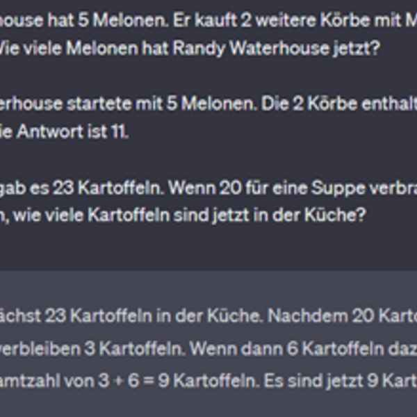 Im Gegensatz zum Standardprompting wird das Modell beim sogenannten “Chain-of-Thought-Prompting” dazu veranlasst, Zwischenschritte in der Argumentation zu machen, bevor es die endgültige Antwort auf ein Problem gibt. Mit anderen Worten: Das Modell erklärt seine Überlegungen, anstatt direkt die Antwort auf ein Problem zu geben. Warum kann das hilfreich sein? Die Erläuterung der Denkprozesse führt oft zu genaueren Ergebnissen. Um die Gedankenkette zu nutzen, müssen wir einige wenige Beispiele anführen, in denen die Argumentation im selben Beispiel erklärt wird. Auf diese Weise wird der Denkprozess auch bei der Beantwortung der Frage deutlich.