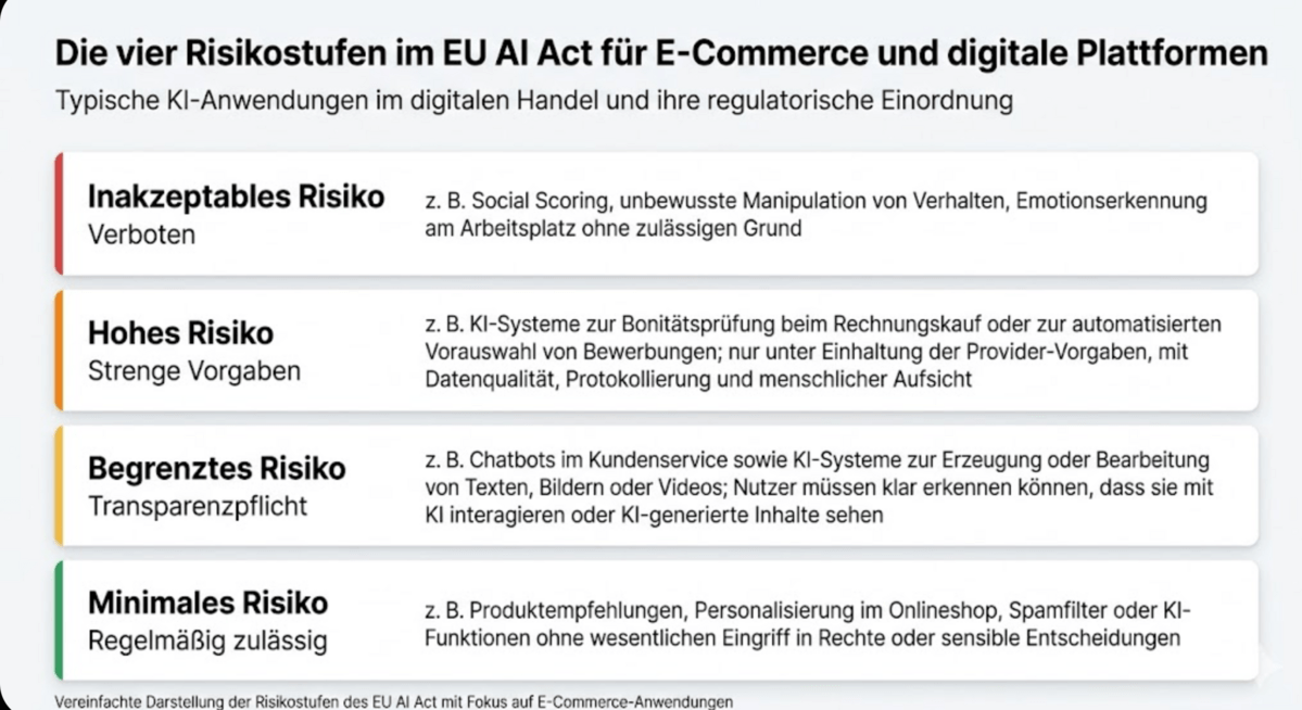 Für Unternehmen im digitalen Handel ist vor allem die Rolle des Deployers relevant, also die Nutzung bestehender Systeme im eigenen Geschäftsalltag. Auf diese Perspektive schauen wir im weiteren Verlauf des Beitrags deshalb genauer.