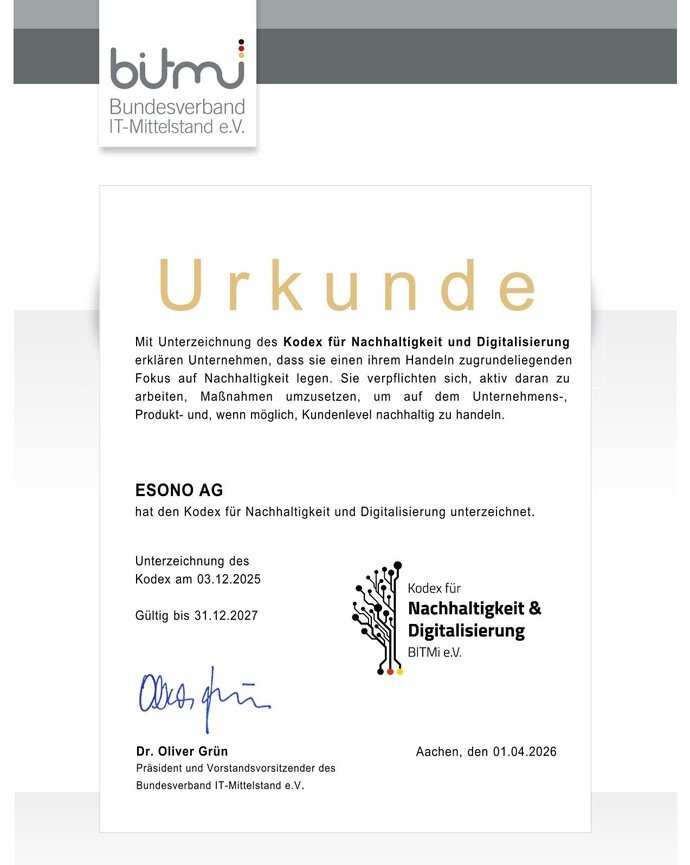 Esono x Kodex für Nachhaltigkeit & Digitalisierung BITMi