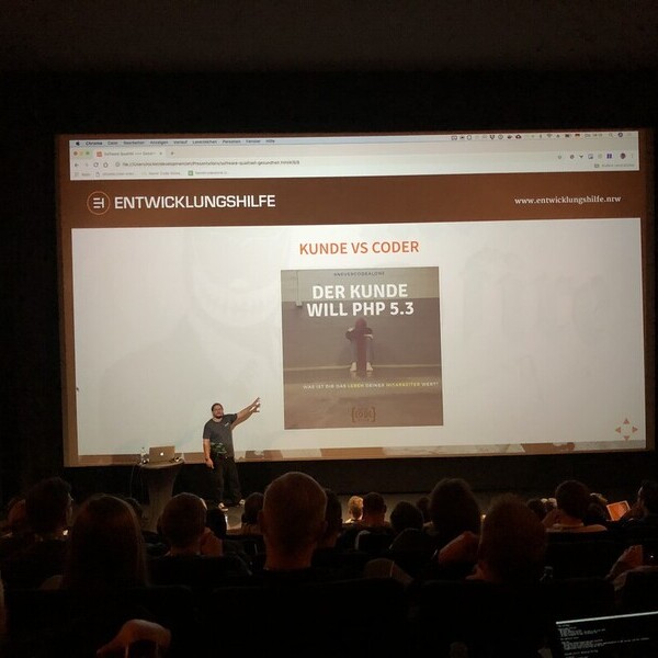 Es kommen immer mehr Tickets, immer mehr Bugs, die Arbeit wird zur Kesselflickerei, weil keine Zeit für gescheite Lösungen da ist, das führt zu noch mehr Bugs, noch mehr Tickets etc. Das klingt übertrieben, aber so ist es leider in vielen Betrieben. Außerdem gibt er den guten Hinweis: Wenn du nur alten Legacy Code fixt, bist du nichts mehr Wert auf dem Markt, da Technologie voranschreitet, du selbst aber nicht. Das ist ein Hinweis, der sich durch die gesamte Veranstaltung und durch mehrere Talks hindurchzieht.
