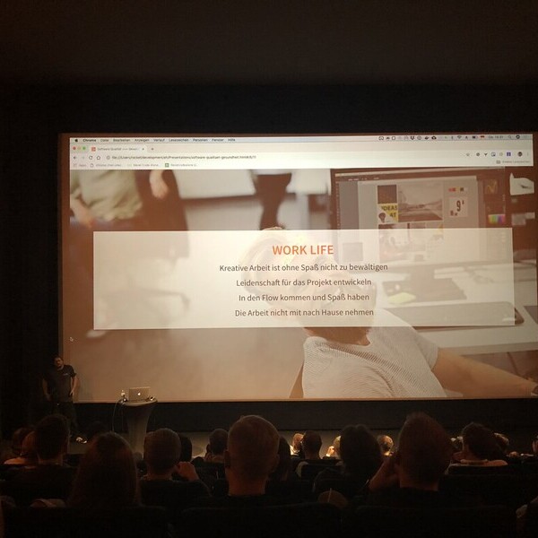Ein sehr eindrücklicher Talk von Alexander. Was ist uns unsere begrenzte Lebenszeit wert? Was wollen wir? Was macht uns zufrieden? Alexander präsentierte ein Manifest für ein besseres Leben. Er will Entwicklern bewusst machen, dass sie schlechte Arbeitsbedingungen, schlechten Code und schlechtes Management nicht tolerieren sollen und müssen. In vielen Betrieben werden die Entwickler verheizt. “Was, der hat Kopfschmerzen? Mach mal weniger Licht.”